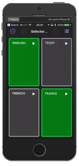 When the English button is pressed, it starts Group cue ENG in the selector