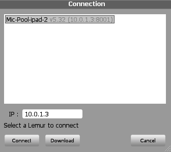 Click the play arrow button in the top right corner of the window to get a list of available devices running Lemur: