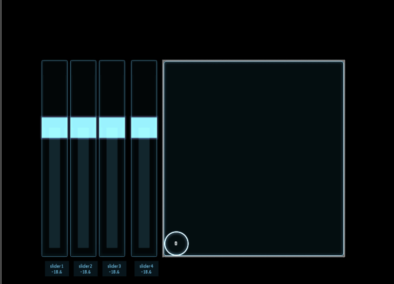 In the center of the screen is a Multiball object. This is a two dimensional control pad that contains a physics engine allowing up to 10 “balls” to bounce around within its bounds. The rules of the physics engine are adjustable.