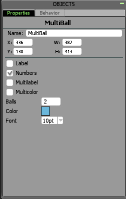 A fader across the top of the Multiball object controls the speed of the ball when in Motion mode.
