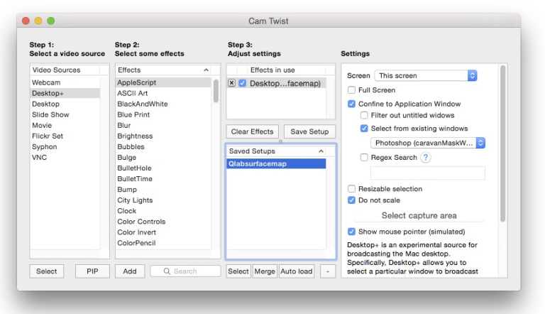 We then open CamTwist and set it up like this: