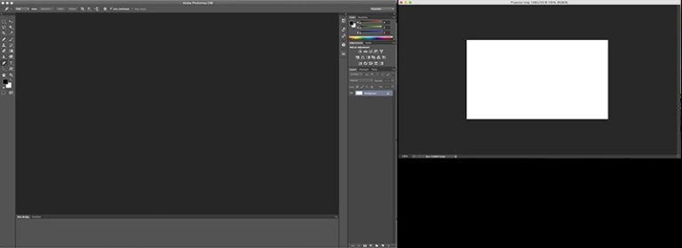 As above, start by creating a new Photoshop document with the same pixel dimensions as the projector, set the scale to 100 percent, but this time leave the window docked into the main Photoshop workspace.