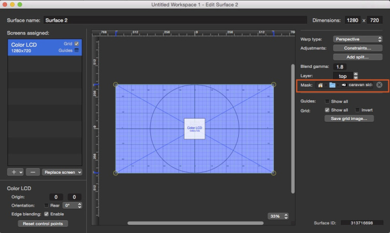 Put it into the mask well of the warped surface and check it out by switching on the grid: