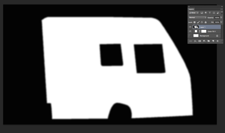 Using selection tools, select the areas you want to mask out (or draw a path around these areas and convert to a selection). In our case, the areas to select are the area outside the trailer side and the two window panes. We can easily select them using the magic wand tool.