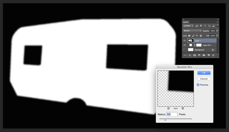 The next thing we want to do is create a mask to blank out the windows and the “overspill” where the projector is falling outside the wall of the trailer that we’re projecting onto.