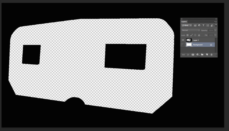 Choose the Magic Wand tool, switch to the Background layer, and click in the area outside the drawing of the trailer. Then hold down the shift key and then click inside each of the two windows.