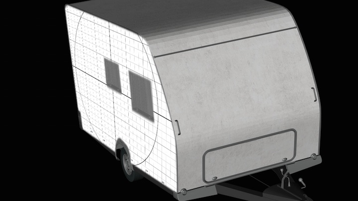 For our example, we will imagine we are doing a beach rave and have found an old camping trailer to project on. We want a surface mask that allows us to project onto only one side of the trailer, and we don’t want to project on the windows of the trailer because the DJs will be working in there.