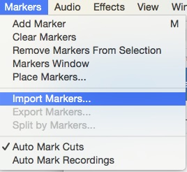This file can then be imported into TwistedWave by choosing Import Markers… from the Markers menu and selecting the .xml file. When the audio file is saved in TwistedWave, the markers are then embedded for use in future cues. TwistedWave can also split a file by markers so you can easily create a file for each section between slices.