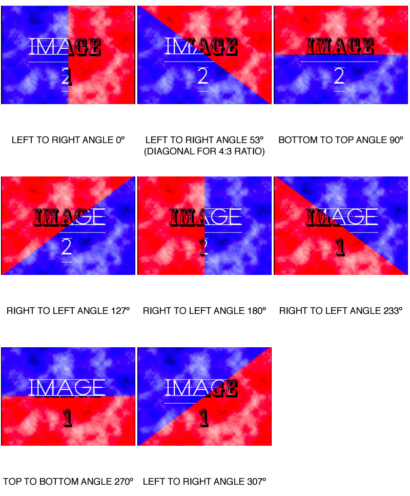 The direction of the wipe is controlled by the angle parameter which can be set in the Video cue’s Video Effects tab.