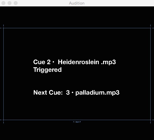 Finally, the two Text cues display their text. Be sure to set up a video surface or open the Audition Window to see this in action.