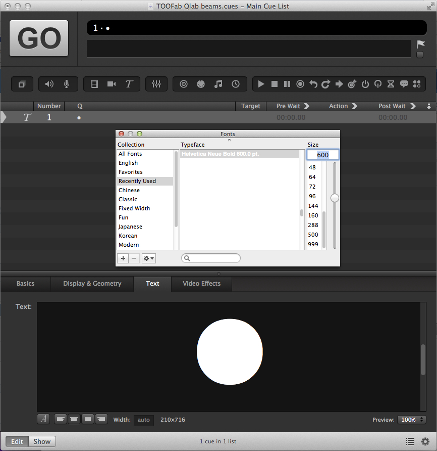 Next, create a Title Cue and number it LIGHT. Set the text of the cue to a