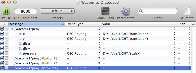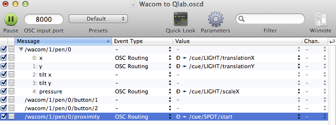 In OSCulator, change the event type of /wacom/.../proximity to OSC Routing