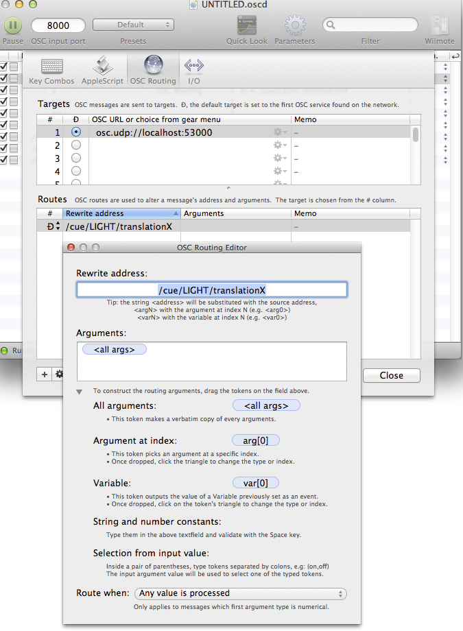 routing, and enter: osc.udp://localhost:53000 in the Target OSC URL.