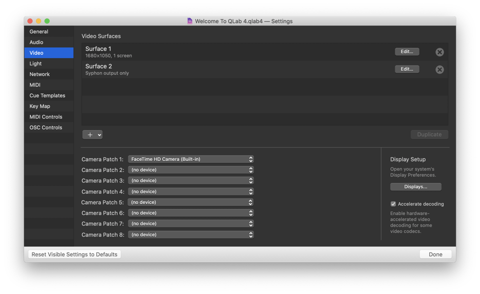 By default, in a new workspace, QLab creates one surface for each display connected to your Mac.